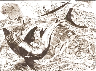 春潮(版画) 黄永玉作 (选自2月24日《文汇报》)