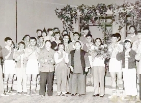 宋庆龄热爱孩子,期盼他们通过体育运动强健体魄,茁壮成长。1963年,由宋庆龄创办的儿童艺术剧院编演了话剧《小足球队》,获文化部颁发的优秀话剧创作奖和演出奖。宋庆龄观演后(见右图),送给小演员一束从自己花园里采摘的鲜花,勉励他们今后要继续努力。