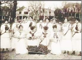 在美求学期间,宋庆龄曾是学校网球俱乐部的成员。1911年的校志特别收录了一张宋庆龄参加网球俱乐部时的集体合影(见左图):照片里,风华正茂的宋庆龄(后排右四)身着统一的白衣白裙,戴着标志性的领巾,微微侧身,迎着阳光扬起年轻的脸庞,手执网球拍骄傲地立在球场上。宋庆龄是学校网球俱乐部中唯一的中国学生。