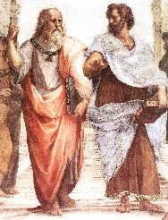 拉斐尔名作《雅典学院》(局部,左为柏拉图,右为亚里士多德)