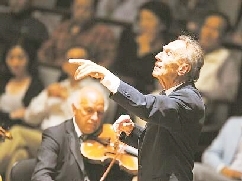 未料,随着瑞士琉森节日管弦乐团的重启,阿巴多登上了新的艺术巅峰。琉森节日管弦乐团是一支由很多出色的演奏家——包括乐队首席与独奏家定期组成的“临时”乐团。阿巴多的艺术魅力吸引着这些音乐家聚合到一起,创造了新世纪的演奏奇观。对指挥家而言,最难带领的就是“全明星队”。但当时的阿巴多恰恰能将自己以往对于作品细致的洞察力,与演奏家们的自发性完美地融合在一起(见图,2009年9月20日,“琉森音乐节在北京”开幕音乐会举行。阿巴多在国家大剧院音乐厅指挥乐团演出)。