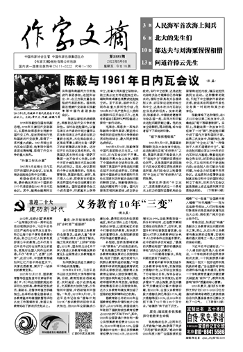 陈毅归国后,在中国代表团和有关各方的共同努力下,日内瓦会议开始对相关国际协议的具体内容逐条展开讨论。最终,会议通过了由中、苏、印、英、法五国代表组成的起草委员会提出的协议文本。1962年7月初,陈毅再次奉命前往日内瓦,出席日内瓦会议的闭幕大会。在会议的最后发言中,陈毅说:“在我们这个时代,国家不分大小,决定每一个国家的命运的,归根到底只能是这个国家的人民。” (摘自《党史博览》2022年第4期)