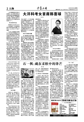 抛开文学,石一枫欢脱随和,热闹得一个人像一支搞笑队伍,以机智好玩的方式解读生活,调侃朋友,也坚持自黑。一触及文学,立刻变载道脸,端方犀利,孜孜不倦。海胆里面软,外面都是刺,扎手。石一枫像翻了面的海胆,表面嘻嘻哈哈,锋芒与稳重藏在内里,藏在生机勃勃的文本中。 (摘自5月2日微信公众号“人民文学出版社”)