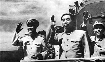 航行在最前列的,是此前不久新投入战斗行列的潜艇编队。周总理兴致盎然地听潜艇支队支队长傅继泽介绍了部队的成长情况。1953年2月,周总理视察了刚刚组建的旅顺潜艇学习大队,鼓励学员们遵照毛主席的指示,克服一切困难,掌握军事技术,学会潜艇作战。4年后的今天,年轻的人民海军已经有了自己的潜艇部队。望着渐渐远去的潜艇编队,总理格外高兴。紧随其后的,依次是猎潜艇编队、高速炮艇编队和鱼雷快艇编队。随着各舰艇编队战舰一艘艘从旗舰前有序通过,海军副司令员刘道生对每一类舰艇的性能、特点、部队状况,向周恩来一一作了介绍。