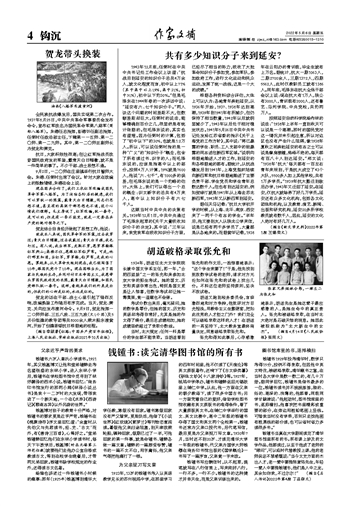 张允和得知此事后,心存感激地表示,胡适先生是她这辈子最应感激的人,是她生命中的真正贵人。张允和被破格录取,在当时北大绝对是石破天惊的消息。她因此被报纸称为“北大新生中的女杰”。 (摘自4月14日《人民政协报》 张雨文)