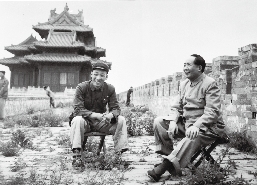 1954年5月17日,毛主席在故宫城墙上小憩。陪同者为故宫博物院保卫科科长韩炳文