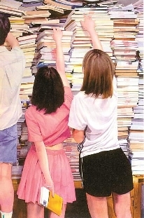 人与书(水粉画) 冉春霞 杨新宇作 (选自7月28日《解放日报》)