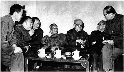 1979年,新老红学家聚会,左起:蓝翎、李希凡、冯其庸、周汝昌、俞平伯、吴世昌、吴恩裕