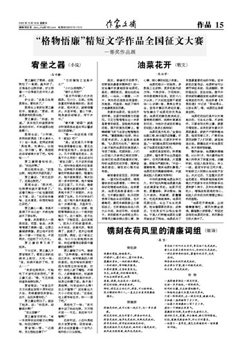 凝视着密密匝匝、挤挤挨挨、一望无际的油菜花,嗅闻着淡淡的油菜清香,一种朴实亲切的情感油然而生。在我看来,油菜花是极普通的一种花,它不像玫瑰花、牡丹花娇贵得只能生长在花园里,也不像梅花、菊花冷僻孤傲让人敬而远之,它欢喜地生活在人民大众中间,亲切平和、没有架子,我的眼前不由浮现出用心用情用力解决群众烦心事、揪心事、闹心事的纪检人形象。