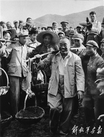 据延安时期担任朱德贴身警卫的管开智回忆,延安大生产运动开始后,朱德和身边工作人员组成一个生产小组,在八路军总部王家坪驻地开荒种了三亩菜地。其中二亩三分地在王家坪菜园里,还有五分多地在延河边上。在开荒种地中,朱总司令像小伙子一样,苦活累活抢着干。每到干活时,年过半百的他,总是首先抢一把最大的镢头,同志们想给他换把小的,朱总司令说啥也不干,还笑着说:“别看我年纪大,可我的身板结实,骨头硬着呢!”在延安,朱德拾粪是有名的。往往是天蒙蒙亮,他就背着粪筐出去了,到吃早饭时,他总能满满地背回来一大筐的牛粪。朱总司令仗打得好,菜也种得好。“他种的西红柿有饭碗那么大,谁看了都赞不绝口。”当时中央不少单位还专门组织大家前来参观他种的西红柿。