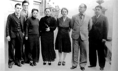 1938年,保盟中央委员会部分成员在香港合影。左起:爱泼斯坦、邓文钊、廖梦醒、宋庆龄、希尔达、法朗士、廖承志
