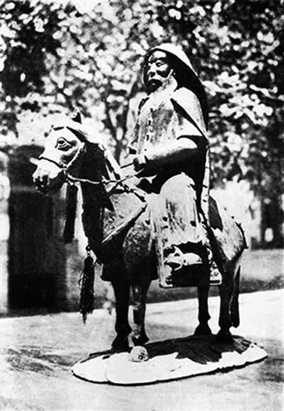 《西北揽胜》为1935年邵元冲游历陕、甘、宁、青等地,并于次年出版的影像集,是20世纪30年代涵盖西北广袤山川景象的罕见大型影集,因印刷精美、装帧考究且注述详实而更为珍贵。照片标注该雕像为清廷颁赠,并在民国时期置于“国货陈列馆”。而此时,“国货陈列馆”设于中山公园之文昌阁。