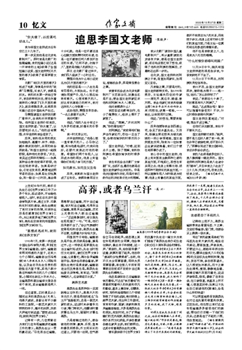 后来,我果然与国文老师成了忘年交。我俩毕竟同在文坛,接触机会多,那是情投意合之事。