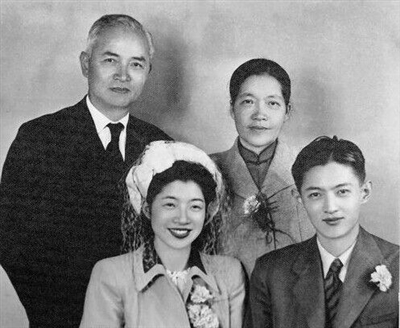 新婚伉俪邹承鲁、李林(前排)与李四光夫妇合影