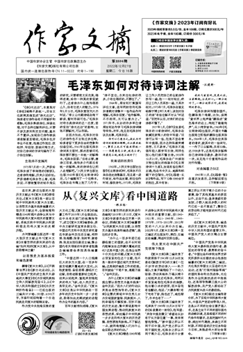 金冲及说,通过编纂出版这部文库,希望把中华民族的过去、现在和未来贯通起来,引导人们从历史中借鉴和汲取智慧营养,认识和把握规律、看清发展潮流,坚定实现中华民族伟大复兴的信心和决心。 (摘自12月23日《中国纪检监察报》)