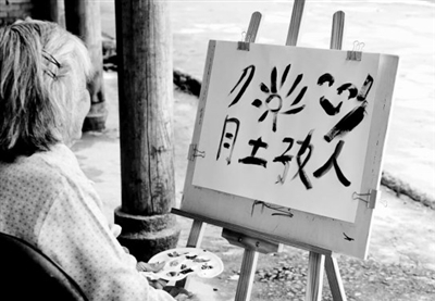 奶奶画得认真,从“不行不行”变成“还要不要画哇?”“是歪,好玩歪!”
