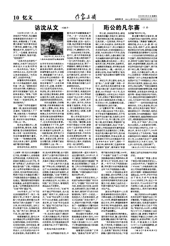 我告诉沈先生,我把先生早年写的有关湘西的大量小说、散文都找来读了,真是亲切得很、感动得很。我曾带着先生的书,只身搭车、乘船颠簸了半个多月,把先生写过的湘西的一草一木又仔细温习了一遍,于是也学着写了一点有关湘西的文字。说着,我便将一本《小说选刊》送给沈先生,告诉他,那上面有我写的一篇小说《船过青浪滩》,获得全国优秀小说奖,我此次赴京就是来参加授奖活动的。