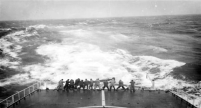 故障清除了,航线在延伸,到了太平洋西风带。太平洋以它特有的凶猛狂暴,裹着一个个泛着白沫的巨浪向船舰扑来。万吨巨轮活像个醉汉,随着巨浪摇摆,依着巨浪升沉。突然,又一个大浪打来,前甲板上的吊车在轻轻晃动,固定钢缆的螺丝松动了。水手长立即组织几名水手,披上雨衣,冒着狂风巨浪冲到前甲板,爬着前进,然后跪在甲板上把螺丝拧紧。