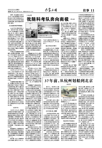 我把令人毛骨悚然的狂风呼啸,用录音机录下;在艰难的情况下,拍摄下惊心动魄的场面。在舱室里,我趴在地板上,赶写了考察船在飓风恶浪中的通讯特写《在沧海横流中》。在船长正确、果断的指挥下,顶风踏浪15个小时,化险为夷!当晚23点30分,船冲出暴风圈,人们高呼:“祖国万岁!”