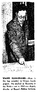 又介绍他的从教和科研经历:“20世纪40年代,王在中国国立浙江大学教授物理学,在日本入侵之后,撤退至西南地区,利用有限设备,在原始条件下继续进行他的研究。”“战后,他的同事投票决定将他送往加州大学伯克利分校,1947年至1948年他在那里做物理学的访问学者。共产党执政后,王成为中国特等科研人员之一。50年代后期,他在俄国,与1950年从西方出走的意大利-英国核科学家布鲁诺·庞特科沃一起共事。”