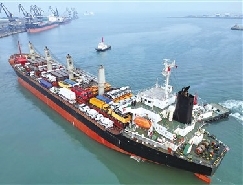 中非班轮“塔内斯梦想”轮从烟台港起航