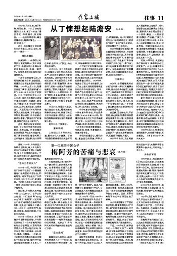 在梅阿芳被扫地出门后,从此她在美国的生活轨迹毫无音讯可循。梅阿芳回到中国的可能性很低,而且在资料里始终找不到她切实的登船回国的信息。很可能,梅阿芳无声无息地接受了自己在美国的命运,并不抱任何回到故土的希望。 (摘自《书屋》2023年第3期)