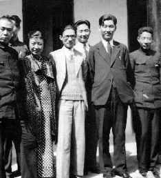 1942年,田汉(前排左一)、王莹(前排左二)、夏衍(前排左三)等在桂林