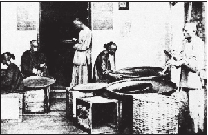 翁隆盛存龙井,靠的是坛子。翁隆盛的龙井茶叶在收购入库以后,必须再经过一次开汤审评。符合要求的茶叶,当晚下锅文火复炒,达到香气透发。冷却后上包,每包一斤,装入灰坛。坛子也有讲究,要在盛茶之前都用旺火炭笼烘烤,待茶坛完全干燥后使用,每坛装茶十三包。再放二斤装石灰袋一只,第一、二次用嫩的石灰,以后三、四次用老的石灰。装坛以后及时换灰,并在石灰将化之前取出,再用新灰装入。