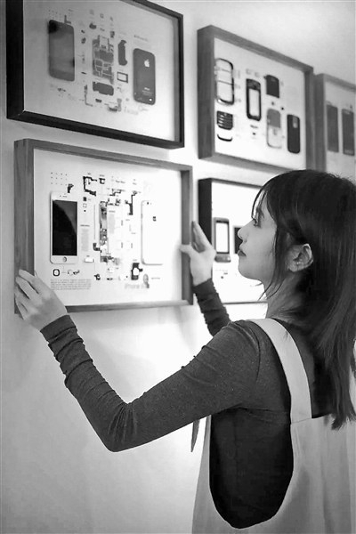 林西从自己的旧物开始做实验,找到了以前的iphone4手机和PSP游戏机,对照着网上的拆解视频开始动手,并且很顺利地设计了排版。“我想把这一想法变成自己的爱好,再把爱好做成小生意,直到现在开了这间工作室。”基于之前的旅游博主粉丝群体,林西发布拆解装裱的视频之后,火速引起了粉丝的兴趣。她最初设计了五个排版的装裱样式公布在网上,几天时间便收到了200多个订单,最后用了半年时间才将订单一一完成。