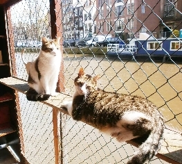 猫船的故事要从1966年当地女士韦尔德收留她生命中的第一只流浪猫说起。很快,韦尔德自己收留以及别人送来的流浪猫在她的家中就住不下了,于是在1968年,住在运河边的她买了一艘旧船,将船体内部进行改造后作为猫的收容所,这就是第一代猫船。3年后,残破的第一代猫船退役,换成第二代猫船。但第二代也只坚持了8年,1979年才有了现在人们看到的猫船的样子。2001年至2002年,猫船进行了全面的检修保养,部分结构进行了翻新和装修。