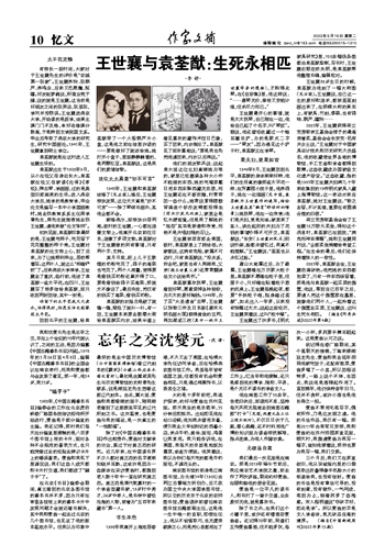 2003年,袁荃猷去世,王世襄悲痛欲绝。他把她的东西都拍卖了,只有一件东西保留着,那是他与袁荃猷一起买菜的提筐,他说,等到自己百年之后,要请人把这个提筐放在墓里,就像他们两个人,一起拎着这个提筐去买菜,王世襄说,这叫生死永相匹。 (摘自《同舟共进》2023年第4期)