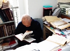 他在南图工作了50余年,告老归休后,却退而不息,坚持每天风雨无阻地去到南图古籍部“打卡”(见图,沈燮元在工位上埋头校对),不仅日日伏于几案,潜心典籍,还不时利用他广博的知识面为读者排扰解难,指点迷津,为他人作嫁衣裳。