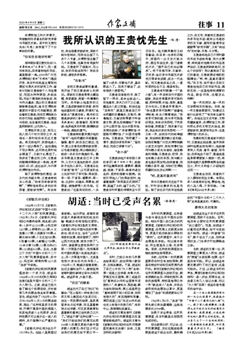 王贵老去世后,我看到不少人撰写的纪念文章。有那么多人由衷地怀念他,赞扬他,他的人品人格,不言而喻。 (摘自《随笔》2023年第1期)