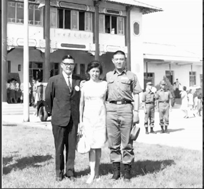 1968年夏,18岁的马英九就读台湾大学法律系时,参加成功岭大专集训班,被分发到二团十五连,在开训典礼中代表一万多名学兵,向主持典礼的“国防部部长”蒋经国宣誓。其间,马鹤凌夫妇曾前往集训班看望儿子,与马英九合影留念(见右图)。