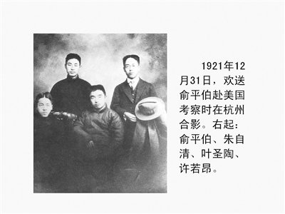 1921年,送俞平伯赴美国考察时在杭州合影,右起:俞平伯、朱自清、叶圣陶、许若昂