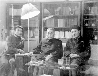 王老的业余生活也很丰富。除从事《红楼梦》研究,作诗和练习书法外,还对盆景艺术有着独特的喜爱。1980年夏天成立的北京盆景协会,邀请他担任了名誉会长。那天为昆老拍照,由于室内光线太暗,照得不理想(见图,中为王昆仑,右为作者)。