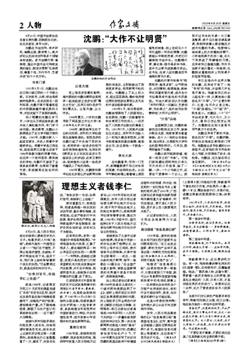 次年,人民日报连载老钱的《从“信息高速公路”看美国信息业》,这时,离中国全功能接入国际互联网还有两个多月。我国在信息化道路上弯道超车,这位老地下党员功不可没。 (摘自8月20日《新民晚报》 李泓冰文)
