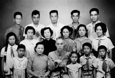 新中国成立后,马叙伦(一排左三)与家人在北京