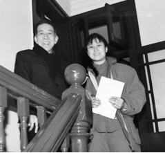 1990年3月4日,丁景唐和女儿丁言昭在左联纪念馆