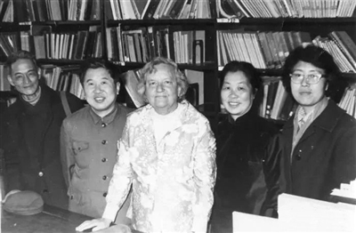 1979年,费慰梅访问清华大学建筑系,左起:莫宗江、吴良镛、费慰梅、林洙、郭黛姮