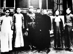 1939年3月,周恩来(左三)戎装回故乡从事革命活动时与亲友合影