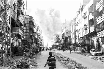 8月3日,加沙地带北部加沙城遭袭地点冒出浓烟