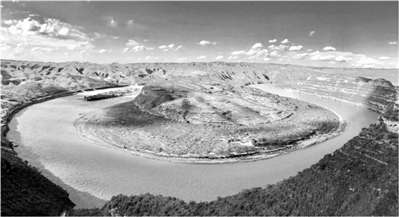 从高空俯瞰,黄河中游的乾坤湾呈现一个巨大的“S”形,两岸恰似阴鱼和阳鱼,各自独立而又水乳交融。这条劈开了秦晋峡谷的大河,千回百转,然后毫不犹豫地向南奔去,而乾坤湾恰似镶嵌在黄河上的一个美丽的中国结。