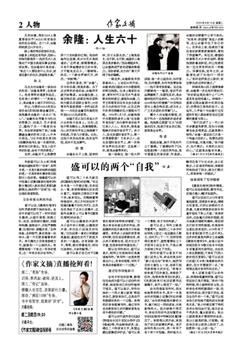 “我们完成了上一代人的许多愿望和梦想,而如今的晚辈也会走得更远,这就是薪火相传。”余隆一直说自己只是一个传递火炬的人。他要完成自己的传递,无愧无憾。“我不暗示,也不展示。只是听从自己的心。”这就是余隆的本真。 (摘自7月21日《新民晚报》)