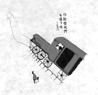 盛可以说自己2013年首次拿起画笔,因感故乡渐远,情绪无处宣泄,只好以涂鸦的方式排遣,无意间将美丽的故乡和童年留在了纸上天堂,“我是幸运的,这些毫无功底的图画,因为纯真的情感和趣味,得到朋友们的支持和鼓励,先是译林出版社找我签约,2014年有了绘本首版《春天怎么还不来》。这次的机缘是向萍女士在编辑《建筑伦理学》中,发现小说中的现实故乡与散文绘本中的故乡有着某种关联呼应,决定收入我近期新画,于是有了《别人家的西瓜更甜》。”盛可以说自己的画(见右图)是清新自然天真的,但文字要凌厉一点,“我觉得这是对我写作的互补。”