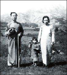 河南南阳唐河城,是一座历史悠久、文化底蕴深厚的文化名城,县城里随处可见的冯氏元素——贞元路、友兰湿地公园、冯友兰纪念馆(见左图),无不在告诉人们,唐河哺育了自己的优秀儿女。冯氏三兄妹(见中图,二排左二为冯沅君,后排右一为冯友兰,后排左一为冯景兰)——冯友兰、冯景兰(见右图,1940年冯景兰与夫人和幼女)、冯沅君(恭兰)也为唐河写下浓墨重彩的篇章。