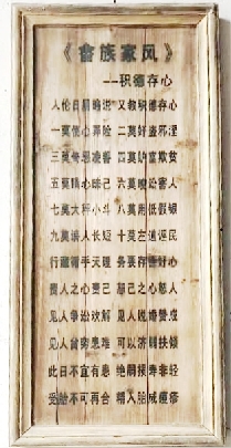 福建省霞浦县半月里村,畲族民间博物馆藏“畲族家风”木牌,第六条即“莫唆讼害人”