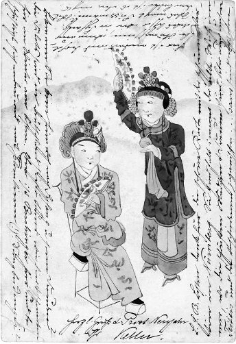亲爱的女士,我给你寄了一些中国明信片,完全是以前从未见过的。我和一位中国艺术家本人定制的。它们非常原创,代表了中国生活中的一些亲密场景。