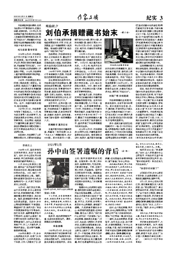 离开重庆之前,刘伯承决定将自己珍藏的部分书籍字画捐赠给西南图书馆。这批书的具体捐赠过程,几十年来一直是个谜。为弄清事情原委,1980年,刘伯承的儿子刘蒙专程来到重庆,在重庆图书馆(当时称重庆市图书馆)待了一个月,翻阅了刘伯承捐赠的大量图书,从中发现了很多眉批文字,基本弄清了刘伯承捐赠图书的来龙去脉。