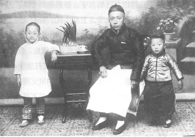 1916年,祖父和我父亲(右)、我姑姑。那时祖母已经过世,祖父还未续弦